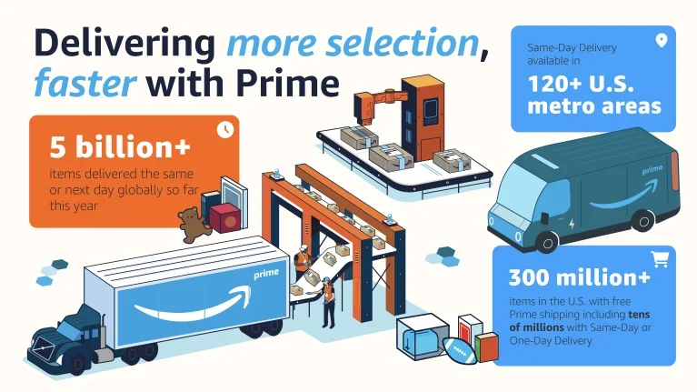 Amazon’s Same Day Delivery infographic. Source: https://www.channelmax.net/article/amazon-sets-new-milestone-for-fastest-prime-delivery-speeds