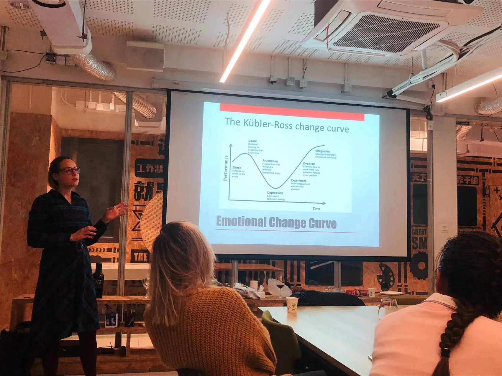 To guide us through what change management is, we invited Dorothy Stahjans to discuss her experience managing business changes all over the world. Ms. Stahjans is a Deputy Director of Business Development where she has had to manage teams in two different countries and has had moderate more changes than she can count. Her ability to lead teams through sudden changes and manage complicated emotions were developed during her time as a trail runner in Beijing and as a volunteer mentor for the World Academy for the Future of Women.